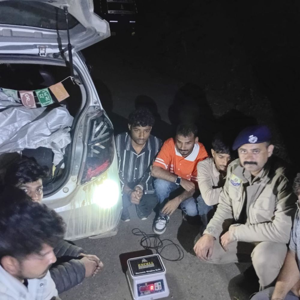 कांगड़ा पुलिस ने पंचरूखी थाना क्षेत्र में एक Alto K-10 कार से 150 ग्राम चरस बरामद की है। कार में सवार पांच युवकों को मौके पर ही गिरफ्तार कर लिया गया।आरोपियों के खिलाफ पंचरूखी पुलिस थाने में एनडीपीएस अधिनियम के तहत मामला दर्ज किया गया है। मट्ट से धर्मण की ओर जा रही लिंक रोड पर ट्रैफिक चेकिंग के दौरान Alto कार (नंबर HP96-5306) को रोका गया। तलाशी में कार से चरस बरामद हुई। आरोपियों की पहचान शुभम (20) पुत्र सुरेंद्र सिंह निवासी चम्बी-चीडन, अक्षय कुमार (24) पुत्र तिलक राज, अभय कुमार (23) पुत्र तिलक राज, अरुण कुमार (19) पुत्र रूप सिंह (सभी निवासी टिक्कर) और प्रद्युमन (25) पुत्र सुनील कुमार निवासी महाकाल, जिला कांगड़ा के रूप में हुई है।