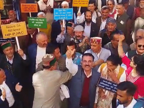 हिमाचल प्रदेश में विभिन्न विभागों से रिटायर अधिकारी-कर्मचारी आज अपनी मांगों को लेकर जिला मुख्यालय में प्रदर्शन कर रहे हैं। इस दौरान शिमला के डीसी ऑफिस के बाहर पेंशनरों ने ‘डीए चोर, गद्दी छोड़’ नारे लगाए। वित्तीय लाभ नहीं मिलने से पेंशनर मायूस हैं। पेंशनरों की प्रमुख मांगें 1 जनवरी 2016 से 31 जनवरी 2021 के बीच रिटायर कर्मचारियों को संशोधित कम्युटेशन, लीव इनकैशमेंट व ग्रेच्युटी, 16 प्रतिशत महंगाई भत्ता और पिछले 2 सालों से लंबित मेडिकल बिलों का भुगतान शामिल है। इससे नाराज पेंशनर आज हिमाचल संयुक्त पेंशनर संघर्ष समिति के बैनर तले सभी जिलों में प्रदर्शन कर रहे हैं और डीसी के माध्यम से सरकार को ज्ञापन सौंपेगे। प्रदेश में 1.30 लाख पेंशनर हिमाचल में लगभग 1 लाख 30 हजार पेंशनर हैं। आज इनकी संयुक्त संघर्ष समिति ने प्रदर्शन करने का निर्णय लिया है। पेंशनर सरकार से अपनी मांगों को लेकर मिल चुके हैं। मगर बार बार उन्हें आश्वासन दिए जाते हैं। आर्थिक संकट के कारण सरकार इनके वित्तीय लाभ नहीं दे पा रही है। शिमला में एचआरटीसी के रिटायर पेंशनर दो दिन से प्रदर्शन कर रहे हैं। अब दूसरे विभागों से रिटायर पेंशनर भी सड़कों पर उतर कर अपने वित्तीय लाभ के लिए अड़ गए हैं। इसके लिए कर्मचारी आर पार की लड़ाई लड़ने की तैयारी में है। शिमला में DC ऑफिस के बाहर प्रदर्शन शिमला में विभिन्न विभागों से रिटायर पेंशनर आज डीसी ऑफिस के बाहर प्रदर्शन कर रहे हैं। संयुक्त संघर्ष समिति के अध्यक्ष सुरेश ठाकुर, महासचिव इंद्र पाल शर्मा, अतिरिक्त महासचिव भूप राम और मीडिया प्रमुख सैन राम नेगी ने कहा कि सरकार उनकी मांगों की लगातार अनदेखी कर रही है, जिसके बाद पेंशनरों ने सड़कों पर उतरने का निर्णय लिया है। तीन प्रतिशत डीए की घोषणा से कर्मचारी मायूस वहीं पेंशनर संघ के नेताओं ने सीएम द्वारा दो दिन पहले की गई 3 प्रतिशत डीए की घोषणा पर हैरानी जताई, क्योंकि 1 जुलाई 2023 को केंद्र सरकार ने 4 प्रतिशत डीए जारी किया था और सीएम ने तीन प्रतिशत डीए देने की बात कही है।