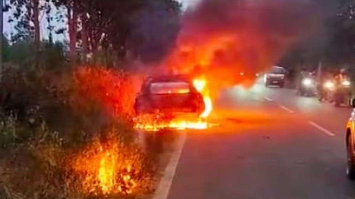कर्नाटक के रामनगर में टोल बूथ के पास चलती कार में अचानक आग लग गई और वाहन पूरी तरह जलकर खाक हो गया। इस घटना में कार की हालत देखकर इलाके में दहशत फैल गई।