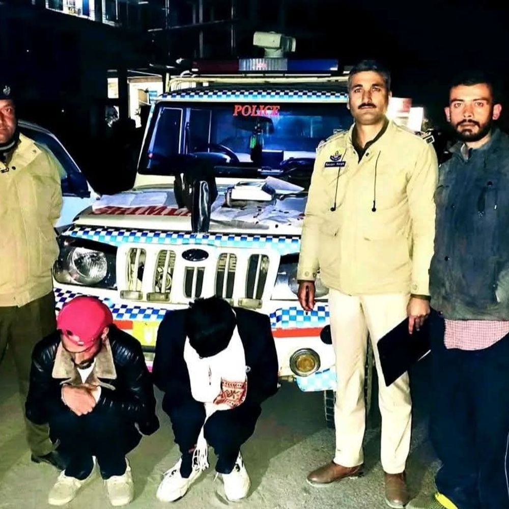 शिमला पुलिस ने ठियोग बाईपास पर सोमवार रात एक बड़ी कार्रवाई करते हुए 26.030 ग्राम चिट्टा/हेरोइन बरामद किया है। इस मामले में दो युवकों, रंजन डोगरा (28) और आयुष (21), को मौके से गिरफ्तार किया गया है। पुलिस ने यह कार्रवाई गुप्त सूचना के आधार पर की। जानकारी के अनुसार, एएसआई रंजीत सिंह अपनी टीम के साथ गश्त पर थे, तभी उन्हें सूचना मिली कि दो युवक अल्टो कार में ठियोग बाईपास स्थित शराब के ठेके के पास चिट्टे की खरीद-बिक्री कर रहे हैं। पुलिस टीम तुरंत मौके पर पहुंची और कार की तलाशी ली, जिसमें 26.030 ग्राम चिट्टा/हेरोइन बरामद हुआ। दोनों आरोपियों को हिरासत में ले लिया गया है और एनडीपीएस एक्ट के तहत मामला दर्ज कर गिरफ्तार किया गया है। डीएसपी सिद्धार्थ शर्मा ने मामले की पुष्टि करते हुए बताया कि नशे के खिलाफ पुलिस की कार्रवाई लगातार जारी है। आरोपियों को आज अदालत में पेश किया जाएगा और मामले की आगे की जांच जारी है।