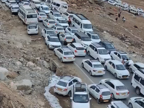 हिमाचल प्रदेश के कुल्लू-मनाली और लाहौल-स्पीति के पर्यटन स्थलों पर इन दिनों बर्फ देखने के लिए देशभर से पर्यटकों की भारी भीड़ उमड़ रही है। इससे पर्यटन स्थलों पर एक बार फिर रौनक लौट आई है। बर्फ के बीच पर्यटक मौज-मस्ती करते, फोटोशूट कराते, स्कीइंग और स्नो स्कूटर का जमकर आनंद उठा रहे हैं। हालांकि, इसके चलते मनाली और लाहौल के कई इलाकों में लंबा जाम देखने को मिला। दूसरी ओर, लाहौल-स्पीति के ऊंचे पहाड़ों को छोड़ दें तो अभी निचले पर्यटन क्षेत्रों में बर्फबारी नहीं हुई। बावजूद इसके, बर्फ देखने की चाह में पर्यटक रोहतांग पास, ग्रांफू, कोकसर और शिंकुला दर्रा का रुख कर रहे हैं। ग्रांफू में जाम, सोशल मीडिया पर वीडियो वायरल लाहौल-स्पीति के ग्रांफू में दर्जनों वाहन ट्रैफिक जाम में फंसे रहने का वीडियो सोशल मीडिया पर तेजी से वायरल हो रहा है। दरअसल, मंगलवार और बुधवार को रोहतांग दर्रा सड़क की मरम्मत के चलते बंद रखा गया है। इस वजह से अधिकांश टूरिस्ट ग्रांफू की ओर जा रहे हैं, जिससे डेढ़ किमी लंबा जाम लग गया। स्थानीय प्रशासन को ट्रैफिक व्यवस्था संभालने में कड़ी मशक्कत करनी पड़ रही है। बर्फ ढोकर लाने के आरोप, टूरिज्म सेक्टर में बहस इस बीच सोशल मीडिया पर कुछ वीडियो वायरल हुए हैं, जिनमें आरोप लगाया जा रहा है कि मनाली में गाड़ियों में बर्फ भरकर लाया जा रहा है और उसे समतल जगहों पर डालकर पर्यटकों से पैसे वसूले जा रहे हैं। 31 सेकेंड के एक वायरल वीडियो में एक महिला यह कहते हुए नजर आ रही है कि ये देखिए ये हो रही स्नोफॉल, गाड़ी से बर्फ उतारते हुए, हमारे कुछ भैया लोग, रहा सवाल पब्लिक का, तो ये देखिए पब्लिक उतर गई मैदान में, सूट-बूट पहनकर, फोर बाय फोर गाड़ियों में आते हुए, 2000 रुपए देकर पहले गाड़ियों में आए, अब 5000 देकर एक्टिविटी कर रहे। पर्यटन कारोबारी बोले- फ्रॉड नहीं, टूरिस्ट की डिमांड महिला के आरोपों पर स्थानीय पर्यटन कारोबारी राजेश चंद ने सफाई देते हुए कहा कि यह फ्रॉड नहीं, बल्कि पर्यटकों की मांग के अनुसार की जा रही व्यवस्था है।उन्होंने कहा कि अधिकांश टूरिस्ट रोहतांग, ग्रांफू या शिंकुला दर्रा तक नहीं जा पाते। न तो सभी के पास फोर-बाय-फोर वाहन होते हैं और न ही हर कोई उसका खर्च उठा सकता है। ऐसे में ऊंचे पहाड़ों से बर्फ लाकर सुरक्षित समतल जगहों पर रखी जाती है, ताकि टूरिस्ट बर्फ के बीच फोटो खिंचवा सकें। मनाली-सोलंगनाला समेत इन इलाकों में भी लौटी रौनक लाहौल-स्पीति के बर्फीले पर्यटन स्थलों के अलावा मनाली, सोलंगनाला, बंजार, जिभी वैली, अटल टनल और मणिकर्ण घाटी में भी पर्यटकों की चहल-पहल बढ़ गई है।मनाली में वीकेंड पर होटल ऑक्यूपेंसी 60 फीसदी से ज्यादा और आम दिनों में भी 40 फीसदी से अधिक दर्ज की जा रही है। 20-21 दिसंबर को बर्फबारी की उम्मीद
