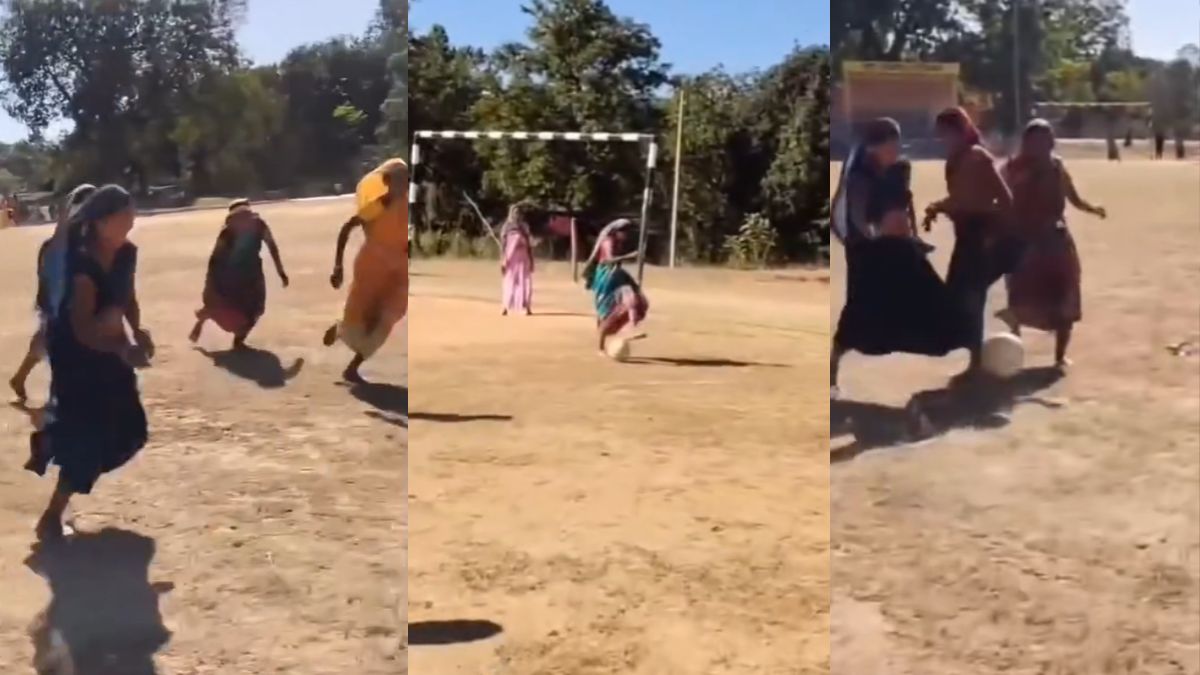 ओडिशा के सुंदरगढ़ में महिलाओं ने साड़ी पहनकर फुटबॉल मैच खेला। इस मैच का वीडियो सोशल मीडिया पर तेजी से वायरल हो रहा है। वहीं लोगों ने इस पहल की सराहना भी की है।