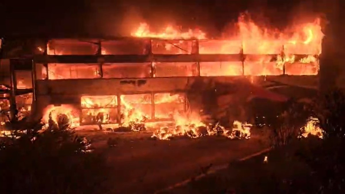 आंध्र प्रदेश के नांदियाल जिले में कंटेनर लॉरी से टकराने के बाद एक बस में भीषण आग लग गई जिसका भयानक वीडियो सामने आया है। जानकारी के मुताबिक, इस हादसे में 3 लोगों की मौत हो गई है।