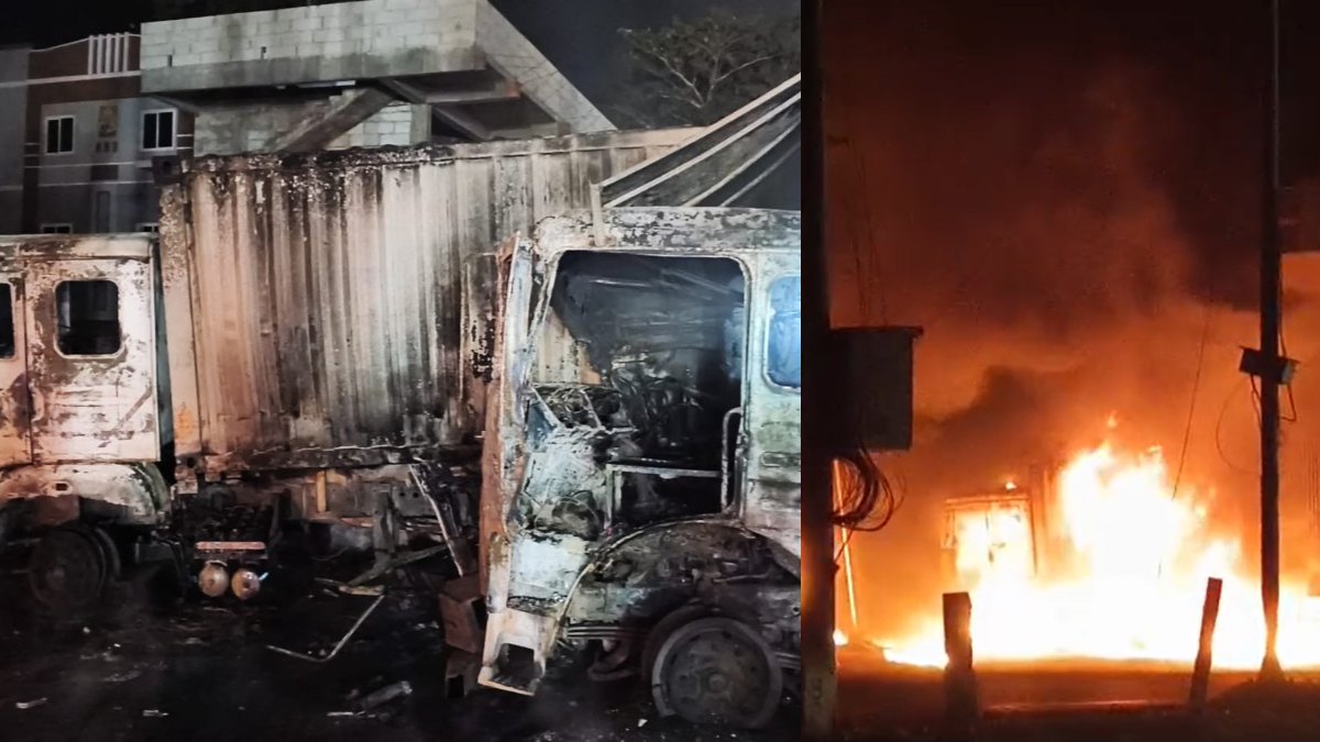 आंध्र प्रदेश के काकीनाडा जिले में नेशनल हाईवे पर 2 ट्रक आपस में टकरा गए। ट्रकों के टकराने पर मौके पर भीषण आग लग गई जिसमें एक ड्राइवर जिंदा जल गया और उसकी मौत हो गई है।