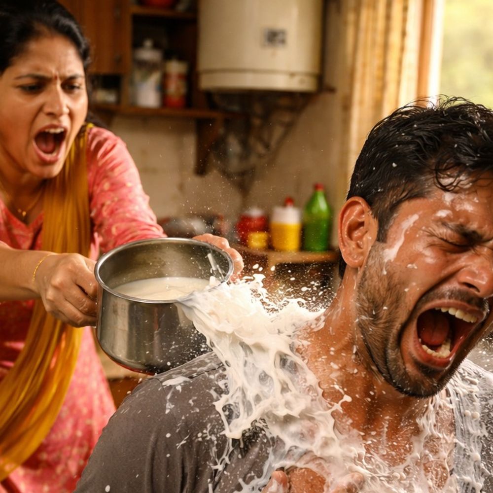 हिमाचल प्रदेश के मंडी में पति ने अपनी धर्मपत्नी को मोबाइल चलाने से रोका तो गुस्साई पत्नी ने अपने ही पति पर उबलता हुआ दूध फेंक दिया। इससे धर्मपाल (36) का चेहरा और शरीर का लगभग 15 फीसदी हिस्सा झुलस गया। इसके बाद घायल पति को बलद्वाड़ा अस्पताल में उपचार को लाया गया। वहीं, पुलिस ने पति की शिकायत पर उसकी पत्नी नीना कुमारी के खिलाफ FIR कर जांच शुरू कर दी है। यह घटना मंडी मंडी जिले के सरकाघाट सब डिवीजन के जमनौण गांव की है। पुलिस की प्रारंभिक जांच के अनुसार, बीते बुधवार को महिला काफी देर से मोबाइल फोन चला रही थी। पति ने उसे फोन चलाने से रोका, जिस पर दोनों के बीच कहासुनी शुरू हो गई। इसके बाद पत्नी रसोई में गई और वहां रखा उबलता हुआ दूध लाकर पति पर फेंक दिया। गर्म दूध गिरने से पति का चेहरा, छाती और पेट झुलस गया। धर्मपाल की चीख सुनकर परिवार के दूसरे सदस्य मौके पर पहुंचे और तुरंत उसे नागरिक अस्पताल बलद्वाड़ा ले गए। डॉक्टरों ने धर्मपाल को प्राथमिक उपचार देने के बाद अस्पताल से छुट्टी दे दी। पुलिस ने मामला दर्ज कर जांच शुरू की वहीं, घटना की सूचना मिलने पर पुलिस ने संज्ञान लिया और बीती शाम को ही महिला को पूछताछ के लिए हटली थाने तलब किया। पुलिस ने पत्नी के खिलाफ भारतीय न्याय संहिता (BNS) की धारा 125 के तहत मामला दर्ज किया गया है। पुलिस अब पड़ोसियों के भी बयान दर्ज कर रही है। पुलिस के अनुसार, धर्मपाल और नीना कुमारी में झगड़े का मामला पहले भी एक बार पुलिस के पास पहुंच चुका है। तब नीना कुमारी ने धर्मपाल पर घरेसू हिंसा का मुकद्दमा दर्ज कराया था। बताया जा रहा है कि नीना कुमारी गृहिणी और धर्मपाल मेहनत मजदूरी करता है। कानून के तहत की कार्रवाई की जा रही: SP एसपी मंडी विनोद कुमार ने बताया कि इस संबंध में मामला दर्ज कर लिया गया है। पुलिस पूरे मामले की जांच कर रही है और जांच पूरी होने के बाद आगे की कानूनी कार्रवाई की जाएगी।