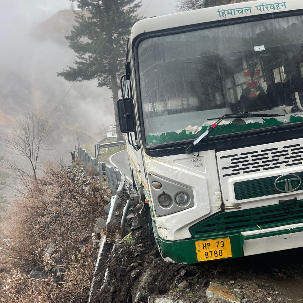 भरमौर उपमंडल की कुगती-हडसर-भरमौर सड़क पर मंगलवार सुबह एक बड़ा हादसा टल गया। कुगती से चंबा जा रही एचआरटीसी की एक बस पर हडसर के पास अचानक पहाड़ी से भारी मलबा आ गिरा। मलबा गिरने से बस सड़क किनारे असंतुलित होकर हवा में लटक गई। यह घटना सुबह करीब 9 बजे हुई। बस में लगभग 10 से 15 यात्री सवार थे, जिनमें स्कूल के बच्चे भी शामिल थे। बस के हवा में लटकने से यात्रियों में चीख-पुकार मच गई। सभी यात्रियों को सुरक्षित बाहर निकाला