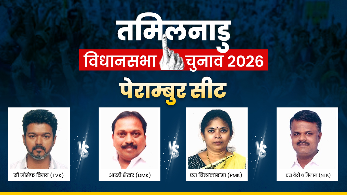 Perambur Assembly Election 2026: तमिलनाडु की पेराम्बुर विधानसभा सीट से सुपरस्टार विजय चुनावी मैदान में हैं, जिन्होंने अपनी नई पार्टी तमिलगा वेट्री कझगम (TVK) लॉन्च की है।