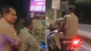 सोशल मीडिया पर उत्तर प्रदेश के दो पुलिसवालों का वीडियो काफी वायरल हो रहा है। वीडियो में दोनों बाइक पर बिना हेलमेट के नजर आ रहे हैं।