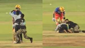 आरसीबी ने पंजाब किंग्स की टीम को चार विकेट से हरा दिया। लेकिन मैच के बीच में ही एक फैन ग्राउंड में घुस गया और इस फैन ने कोहली के पैर छुए