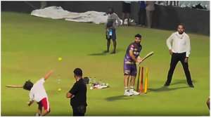 आईपीएल के दौर में शाहरुख खान से ज्यादा उनके लाडले अबराम सुर्खियां बटोर रहे हैं। कभी वो मैच देखते नजर आ रहे हैं तो कभी खेलते हुए। देखिए वायरल हो रहे वीडियो में किस तरह अबराम रिंकू सिंह को धांसू बॉलिंग करवाते हुए नजर आ रहे हैं।