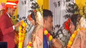 वायरल हो रहे इस वीडियो में आप देख सकते हैं कि दूल्हा-दुल्हन के बीच जयमाला में एक तीसरा शख्स आ जाता है और आते ही पूरा खेल बदल देता है।