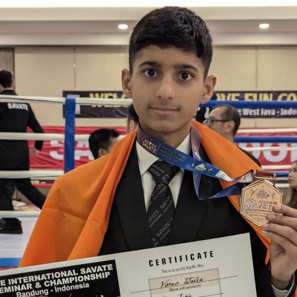 स्वात फ्रेंच बॉक्सिंग चैंपियनशिप में हिमाचल प्रदेश के वरुण वालिया ने कांस्य पदक जीत कर इतिहास रच दिया है। यह जानकारी स्वात संघ हिमाचल प्रदेश की महासचिव संतोषी शर्मा ने दी। उन्होंने बताया कि, इंडोनेशिया में 24 से 29 जून तक आयोजित हुए 5वें एशियन स्वात (फ्रेंच बॉक्सिंग) चैंपियनशिप में भारतीय टीम में शामिल हिमाचल प्रदेश के जिला मंडी से वरुण वालिया ने कांस्य पदक जीता है। वरुण के कांस्य पदक जीतने से बल्ह उप मंडल के गांव मलवाना में खुशी का माहौल है। वरुण वालिया जूनियर बालक वर्ग-42 किग्रा में इरानी बॉक्सर से सेमीफाइनल राउंड में पराजित हुआ। इस प्रतियोगिता में एशियन देश के भारत, नेपाल, श्रीलंका, बंगलादेश, अफगानिस्तान, ईरान, जापान, चाइना, उज्बेकिस्तान, इंडोनेशिया समेत 16 देशों के खिलाड़ियों ने भाग लिया। वरुण वालिया को राज्य स्वात संघ हिमाचल प्रदेश के अध्यक्ष और सभी सदस्यों ने शुभकामनाएं दी है ।