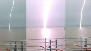 गुजरात के जामनगर जिले से एक खौफनाक वीडियो सामने आया है। यहां पर स्थित जाम जोधपुर तालुका में मौजूद फुलझर डैम पर अचानक आकाशीय बिजली गिर गई। बिजली गिरने का वीडियो कैमरे में कैद हो गया है, जो कि सोशल मीडिया पर तेजी से वायरल हो रहा है।
