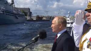 रूस के नौसेना दिवस समारोह के अवसर पर भारतीय नौसेना के जवानों ने स्टील्थ फ्रिगेट INS ताबर के साथ भाग लिया है। व्लादिमीर पुतिन ने भारतीय नौसेना का स्वागत किया है।