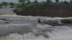 मध्य प्रदेश के मंदसौर जिले से एक वीडियो सामने आया है, जिसमें एक शख्स को पानी के तेज बहाव के बीच फंसे हुए देखा जा सकता है। शख्स अचानक आए तेज बहाव के बीच फंस गया।