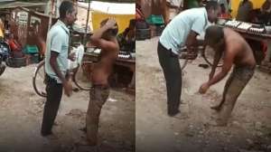 सोशल मीडिया पर एक बेहद ही मजेदार वीडियो वायरल हो रहा है। वीडियो में दो शराबी लड़ने के बाद एक दूसरे के पैर छूकर इज्जत दे रहे हैं।