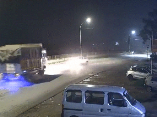 हिमाचल प्रदेश के मंडी जिला के सुंदरनगर में बीती रात चंडीगढ़-मनाली नेशनल हाईवे पर कार और ट्रक में जोरदार टक्कर हो गई। इस हादसे में कार ड्राइवर को हल्की चोटें आई है। ट्रक और कार में टक्कर वहां लगे सीसीटीवी कैमरे में कैद हो गई। सीसीटीवी में दिख रहा है कि कार चालक अपनी लेन से बाहर निकलकर दूसरी लेन में जा पहुंचता है। इससे उसकी गाड़ी की टक्कर सामने से आ रहे ट्रक से हो जाती है। टक्कर के बाद गाड़ी 15 से 20 फीट पीछे लुढकती है। अच्छी बात यह रही कि ट्रक ड्राइवर ने समय रहते ब्रेक लगा दी। यदि ब्रेक नहीं लगाती होती तो कार साथ लगती नहर में गिर सकती थी और इससे बड़ा हादसा हो जाता। यह हादसा सुंदरनगर के नरेश चौक पर मंगलवार देर शाम पेश आया। ओवर स्पीड का चालाना काटा: ASP एएसपी सागर चन्द्र ने बताया कि बीएसएल पुलिस कॉलोनी के तहत यह मामला आया था, जिसमें सरिया से लदा एक ट्रक जैसे ही नरेश चौक के पास पहुंचा तो धनोटु की ओर से सुंदर नगर तरफ जा रही एक कार ट्रक से टकरा गई। उन्होंने बताया दोनों चालकों ने आपस मे समझौता कर दिया था। लिहाजा इस बाबत कोई कोई मामला दर्ज नहीं किया गया। उन्होंने कहा की घटना को लेकर पुलिस ने मौके पर कार चालक का ओवर स्पीड का चालान काटा है।