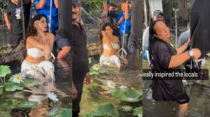 जाह्नवी कपूर ने हाल में ही एक फनी वीडियो सोशल मीडिया पर साझा किया है। ये वीडियो शूटिंग का बीटीएस वीडियो है। इसमें एक्ट्रेस जंगल के बीच तालाब में शूटिंग कर रही हैं, जहां एक शख्स आकर मजेदार हरकतें करने लगता है।