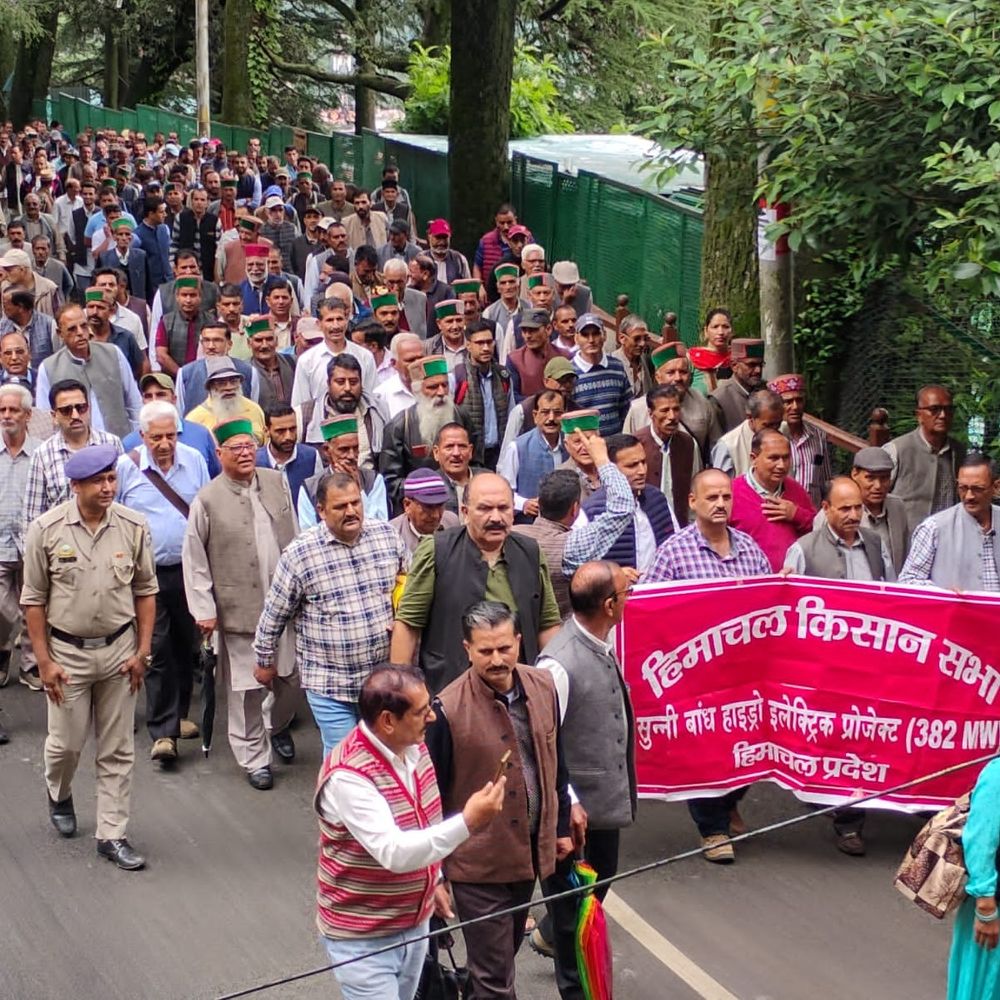 शिमला जिले के सुन्नी हाईड्रो प्रोजेक्ट के प्रभावितों ने शिमला में आक्रोश रैली निकाली। पीड़ितों ने छोटा शिमला से लेकर सीएम के सरकारी आवास ओक ओवर तक प्रदर्शन किया। किसान सभा के बैनर तले प्रदर्शन करते हुए प्रभावित परिवारों ने राहत देने की मांग की है। दरअसल, सुन्नी में पावर प्रोजेक्ट के लिए कंपनी द्वारा की जा रही ब्लास्टिंग से पानी के स्त्रोत सूख गए हैं। घरों में ब्लास्टिंग से दरारें आ गई है। प्रोजेक्ट के कारण स्थानीय लोगों का जीना मुश्किल हो गया है। ब्लास्टिंग से घरों में आ रहे दरारें ग्रामीणों ने कहा, प्रोजेक्ट प्रबंध अवैध डंपिंग कर रहा है। इससे खेत व बगीचे तबाह हो रहे है। उनकी फसल और पशुओं का चारा खराब हो रही है। प्रोजेक्ट बनाने को की जा रही ब्लास्टिंग से लोगों के घरों में बड़ी बड़ी दरारें आ गई है। इसे लेकर स्थानीय किसान कई बार कंपनी प्रबंधन और जिला प्रशासन से मिल चुके है, लेकिन किसी के कान पर जूं तक नहीं रेंग रही। नुकसान की भरपाई नहीं की तो करेंगे आंदोलन: सिंघा ठियोग के पूर्व विधायक राकेश सिंघा के नेतृत्व में सीएम से मिलने आए प्रभावित किसानों ने नुकसान की भरपाई करने का आग्रह किया। इस दौरान मुख्यमंत्री ने प्रभावितों को हर संभव मदद करने का आश्वासन दिया। उन्होंने कहा, प्रदेश में प्रोजेक्ट हिमाचल की शर्तों पर बनेंगे। जो शर्तें नहीं मानेगा, उनके प्रोजेक्ट सरकार वापस लेगी। राकेश सिंघा ने कहा यदि किसानों के नुकसान की भरपाई नहीं की गई तो उन्हें मजबूरन आंदोलन करना पड़ेगा।
