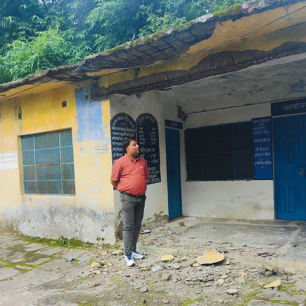 हमीरपुर जिले के उपमंडल बड़सर की ग्राम पंचायत जोड़े अंव में पंचायत भवन का पिलर गिर गया। जिससे ड्यूटी पर आया पंचायत सचिव दिनेश कुमार बाल-बाल बच गए और बड़ा हादसा होने से टल गया है। हादसा दोपहर के समय हुआ। पंचायत सचिव दिनेश कुमार ने बताया कि जब वे पंचायत कार्यालय में काम कर रहे थे, तो पंचायत भवन का एक पिलर गिर गया और साथ में लेंटर का भी एक हिस्सा नीचे धड़ाम से गिर गया। 40-50 साल पुराना है भवन पंचायत भवन लगभग 40-50 साल पुराना है। जो पूरी तरह जर्जर हो गया है। वहीं पंचायत के लिए नया भवन बनाने के लिए पहली किस्त 11 लाख रुपए भी स्वीकृत है। लेकिन अभी पुराने पंचायत घर में ही काम का चलाया जा रहा है। क्या कहते हैं प्रधान? पंचायत प्रधान रजनी पीला ने बताया कि दोपहर के समय पंचायत भवन का पिलर एक नीचे गिर गया। साथ में स्लैब का भी कुछ हिस्सा टूट गया। जिससे कि अब पंचायत प्रतिनिधि और पंचायत सचिव पंचायत घर के अंदर बैठने से कतरा रहे हैं। BDO ने नहीं उठाया कॉल आला अधिकारियों को वस्तु स्थिति से अवगत करवा दिया है । जल्द नए पंचायत भवन का कार्य शुरू करवाने की मंजूरी अधिकारियों के पास अटकी हुई है। वहीं जब अतिरिक्त कार्यभार संभाल रहे BDO भोरंज कुलदीप से कॉल पर बात करने की कोशिश की लेकिन उन्होंने कॉल नहीं उठाया।