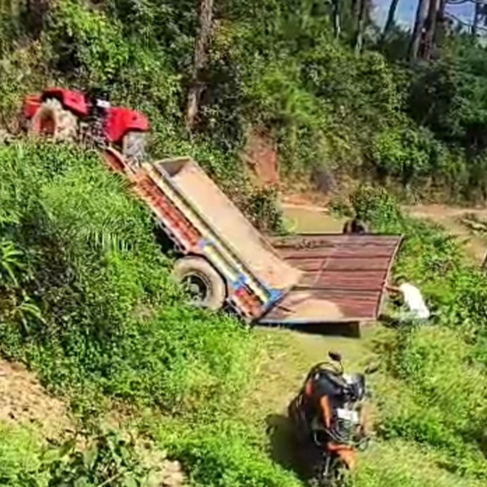 मंडी जिले के पधर में रेत से भी ट्राली लुढ़क गई। हादसे के दौरान एक बाइक ट्राली के नीचे दब गई। ग़नीमत रही कि बाइक चालक सुरक्षित बच गया। हादसा चुक्कू पंचायत का है। जहां रेत से भरी ट्राली चुक्कू से पंचायत कार्यालय को जा रही थी। जहां पंचायत कार्यालय के समीप ही ट्रैक्टर का ब्रेक न लगने से ट्राली नीचे पलट गई। चालक ने छलांग लगा कर जान बचाई। जबकि पंचायत कार्यालय का मनरेगा बोर्ड और मोटरसाइकिल नीचे दब गया। यहां साथ लगते पार्क की गई पंचायत सचिव की स्कूटी सुरक्षित बच गई। चुक्कू गांव निवासी बाइक चालक भूमराज ने बताया कि घटना में मोटरसाइकिल का खासा नुकसान हुआ है। वहीं पंचायत सचिव लता कुमारी ने कहा कि रेत की ट्राली सामुदायिक भवन निर्माण कार्य के लिए लाई जा रही थी। जो पंचायत कार्यालय के समीप दुर्घटनाग्रस्त हो गई।