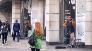लंदन में सड़क के किनारे एक शख्स बॉलीवुड फिल्म मोहब्बतें के एक गाने की धुन में वायलिन बजा रहा है, जिसका वीडियो सोशल मीडिया पर तेजी से वायरल हो रहा है।