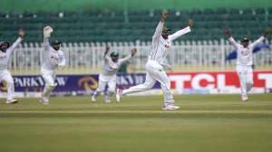 पाकिस्तान और बांग्लादेश के बीच रावलपिंडी में दूसरा टेस्ट खेला जा रहा है जिसमें चौथे दिन एक मजेदार घटना देखने को मिली। एक ओवर में लगातार 2 विकेट गिरने से अबरार अहमद हड़बड़ी में मैदान में आए और इस दौरान उनके हाथ से एक दस्ताना गिर गया। इसके बाद शाकिब अल हसन मुस्कराने लगे।