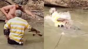 एक आदमी ने पानी में उतरकर एक मछली को पकड़ने की कोशिश की जिसके तुरंत बाद उसे ऐसा झटका लगा जिसकी उसे उम्मीद तक नहीं थी। इसका वीडियो सोशल मीडिया पर वायरल हो रहा है।