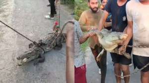 झांसी के भरोसा गांव से एक चौंकाने वाला वीडियो सामने आया है। कुछ ग्रामीण युवाओं ने एक मगरमच्छ को रस्सी से बांधकर उसे साइकिल पर लादकर पूरे गांव में जुलूस निकाला।