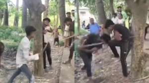 वायरल वीडियो में आरोपी पेड़ से बंधा हुआ दिख रहा है और दो लड़के उसे डंडे से पीट रहे हैं। बाकी लोग तमाशा देख रहे हैं और कुछ लोग आरोपियों को रोकने की भी कोशिश करते हैं, लेकिन वह सफल नहीं होते हैं।