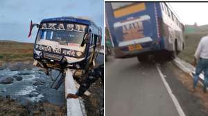मध्य प्रदेश से एक हैरान कर देने वाला वीडियो सामने आया है। वीडियो में देखा जा सकता है कि एक बस नदी के ऊपर बने पुल पर अटक गई है और बस में 30 से ज्यादा लोग सवार हैं।