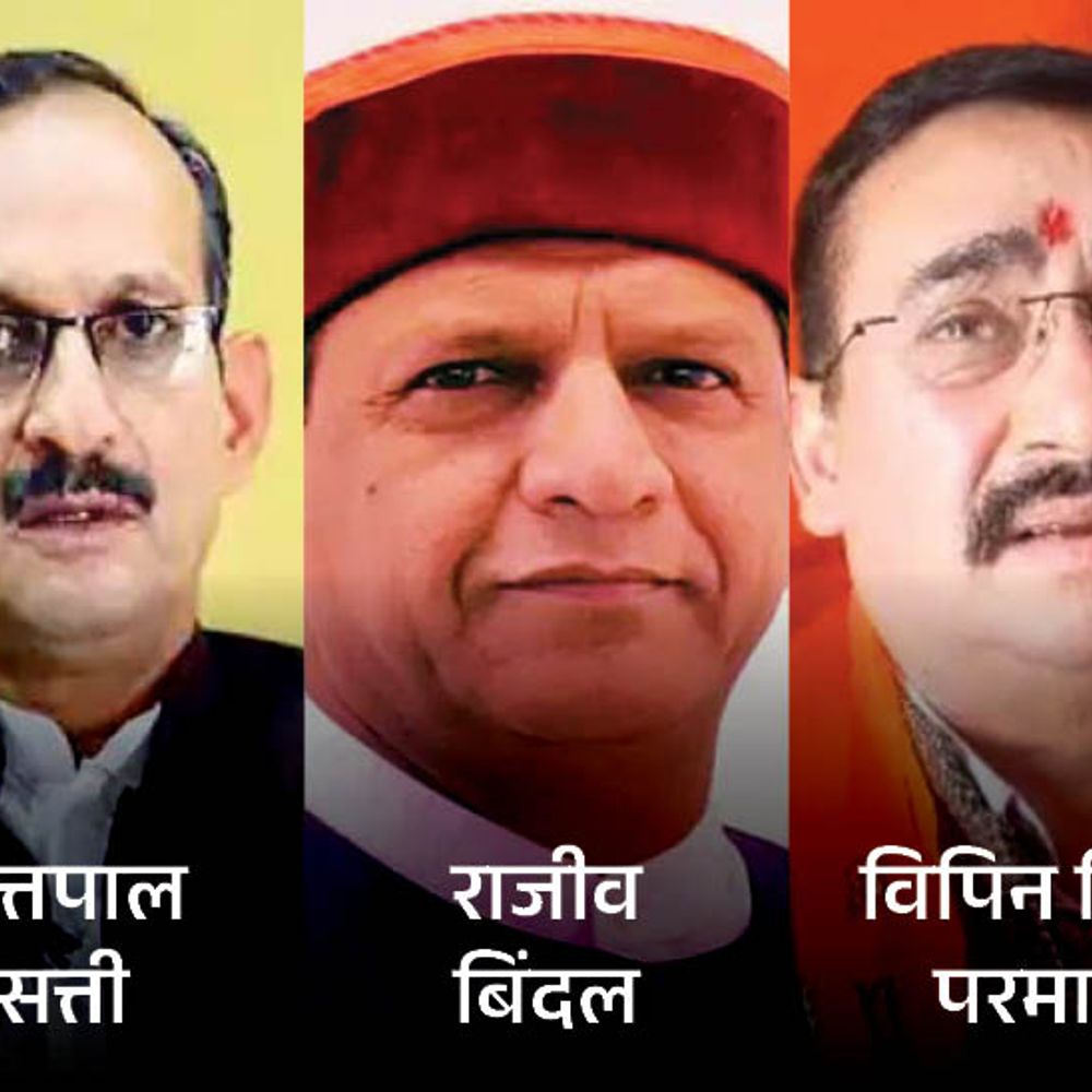 हिमाचल प्रदेश में भारतीय जनता पार्टी को नए साल में नया अध्यक्ष मिलना तय है। भाजपा ने मंडल से लेकर जिला कार्यकारिणी चुनाव के लिए इलेक्शन ऑफिसर नियुक्त कर दिए हैं। इसके साथ ही नए प्रदेश अध्यक्ष के लिए चर्चाएं अभी से तेज हो गई हैं। फिलहाल 7 नाम चर्चा में हैं। प्रदेश अध्यक्ष की दौड़ में 2 पूर्व और मौजूदा प्रधान सत्तपाल सत्ती और राजीव बिंदल के अलावा विपिन सिंह परमार का नाम प्रमुखता से लिया जा रहा है। ये तीनों सबसे मजबूत दावेदार माने जा रहे हैं। अगर इन पर सहमति नहीं बनती है तो पार्टी पूर्व उद्योग मंत्री बिक्रम ठाकुर के नाम पर भी सहमति बनाने की कोशिश कर सकती है। सूत्रों का कहना है कि इन चार वरिष्ठ नेताओं के अलावा पार्टी इंदू गोस्वामी, त्रिलोक जम्वाल और फिर डॉ. सिकंदर को भी अध्यक्ष पद की जिम्मेदारी सौंप सकती है। नेताओं ने अध्यक्ष के लिए लॉबिंग भी शुरू कर दी है। सत्तपाल सत्ती मजबूत दावेदार माने जा रहे प्रदेश अध्यक्ष की रेस में सत्तपाल सत्ती का नाम प्रमुखता से लिया जा रहा है। सत्ती 9 साल तक प्रदेश अध्यक्ष रह चुके हैं। वर्तमान में वह ऊना से तीसरी बार विधायक बने हैं। तेज तर्रार नेता सत्ती 2 बार चुनाव में निर्वाचित होकर अध्यक्ष बने थे, जबकि तीसरी पार उन्हें सेवा विस्तार दिया गया था। बिंदल की फिर से दावेदारी मौजूदा अध्यक्ष एवं 5 बार विधायक रह चुके राजीव बिंदल को भी पार्टी फिर से कमान सौंप सकती है। बिंदल जनवरी 2020 में पार्टी के अध्यक्ष चुने गए। मगर कोरोना काल में भ्रष्टाचार के आरोपों की वजह से उन्होंने 5 महीने के भीतर ही पद से इस्तीफा दिया। दिसंबर 2022 में वह विधानसभा चुनाव हार गए। इसके बाद पार्टी में अप्रैल 2023 में राजीव बिंदल को फिर से अध्यक्ष पद की कमान होगी। कांगड़ा के विपिन परमार मजबूत चेहरा प्रदेश की सत्ता की चाबी तय करने वाले सबसे बड़े कांगड़ा जिला से संबंध रखने वाले सुलह के विधायक विपिन सिंह परमार को भी अध्यक्ष का मजबूत चेहरा माना जा रहा है। परमार संगठन में विभिन्न पदों पर सेवाएं दे चुके हैं। पूर्व सरकार में वह स्वास्थ्य मंत्री के अलावा विधानसभा अध्यक्ष का दायित्व भी संभाल चुके हैं। ये 4 नाम पर अध्यक्ष पद की रेस में इन तीनों के अलावा पूर्व इंडस्ट्री मिनिस्टर बिक्रम ठाकुर, जेपी नड्डा के करीबी त्रिलोक जम्वाल, राज्यसभा सांसद इंदू गोस्वामी और राज्यसभा सांसद डॉ. सिकंदर कुमार का नाम पर खूब चर्चा में है। बिक्रम ठाकुर और इंदू गोस्वामी दोनों कांगड़ा जिला से संबंध रखते हैं। बिक्रम काफी तेज तर्रार नेता माने जाते हैं, वहीं इंदू गोस्वामी को प्रधानमंत्री मोदी का करीबी माना जाता है। इसलिए उन्हें भी दावेदार माना जा रहा है। राजपूत कोटे से भाजपा ने जयराम ठाकुर को नेता प्रतिपक्ष बना रखा है। ऐसे में मिशन