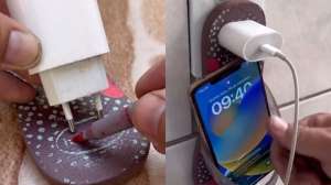 एक शख्स ने फोन को चार्ज करते समय फोन को रखने के लिए होल्डर बनाया है। इसके लिए उसने जो जुगाड़ किया है, उसे देखने के बाद आप अपना सिर पकड़ लेंगे।