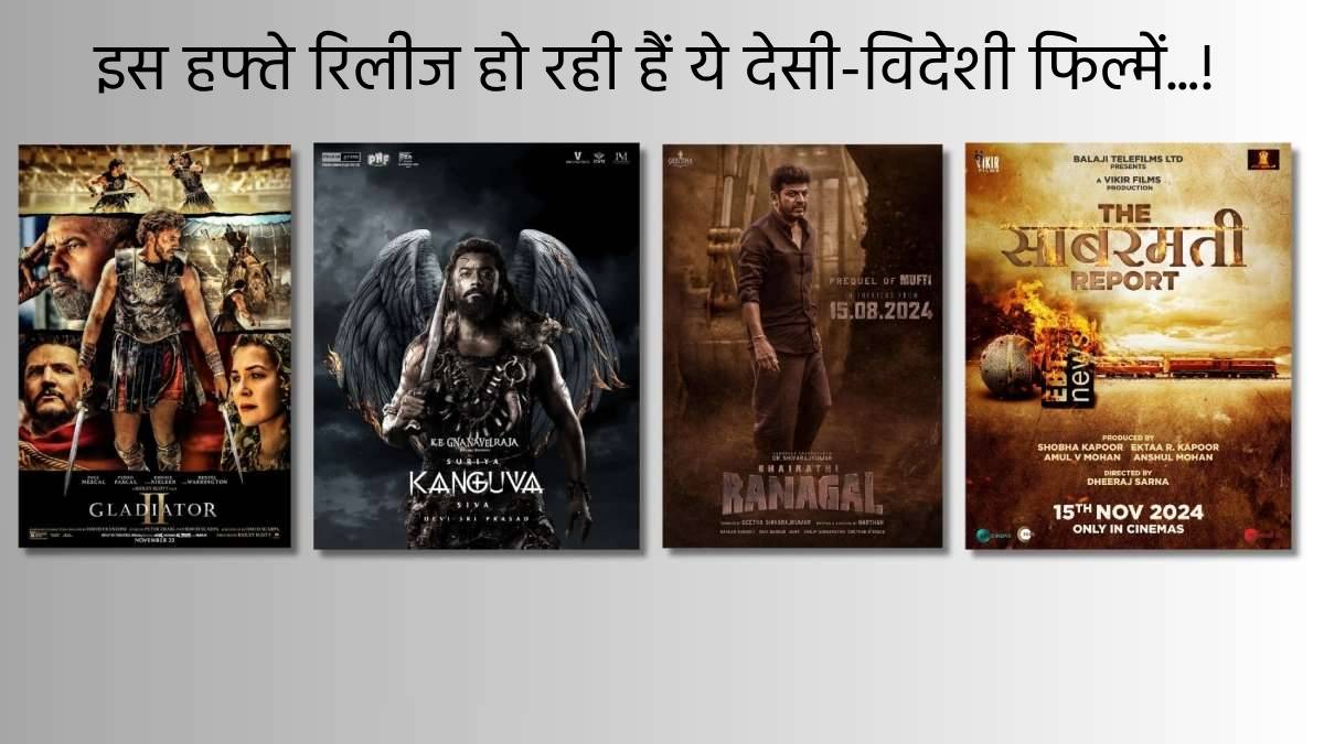 हॉलीवुड फिल्म ग्लेडिएटर 2 के साथ-साथ इस हफ्ते सिनेमाघरों में साउथ सुपरस्टार सूर्या की ‘कंगुवा’ और विक्रांत मैसी की ‘द साबरमती रिपोर्ट’ जैसी फिल्में भी रिलीज हो रही हैं। इसके अलावा, शाहरुख खान की तीन क्लासिक फिल्में सिनेमाघरों में री-रिलीज हो रही हैं। उनके बारे में जानने के लिए आगे पढ़ें।