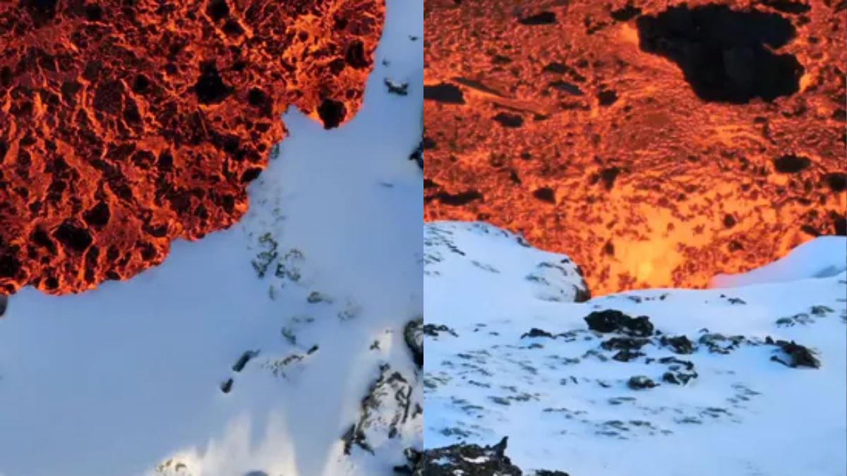 एक आइसलैंडिक फोटोग्राफर ने बर्फ पर बहते लावा की दुर्लभ तस्वीर खींची है, जिसे देख लोगों को अपनी आंखों पर यकीन नहीं हो रहा है। वीडियो में कई लोगों ने दावा किया है कि यह वीडियो AI जनरेटेड है।