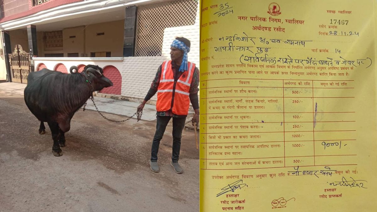 मध्य प्रदेश के ग्वालियर में भैंस द्वारा गोबर करना, उसके मालिक पर भारी पड़ गया है और नगर निगम ने मालिक पर 9 हजार रुपए का जुर्माना लगाया है।