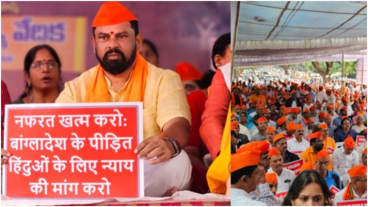 बांग्लादेश में हिंदुओं के खिलाफ अत्याचार नहीं थम रहा है। इस बीच हैदराबाद में हिंदू एकता मंच द्वारा एक सभा का आयोजन किया गया, जिसमें विश्व हिंदू परिषद, बजरंग दल ने भाग लिया। इस दौरान विधायक टी राजा सिंह ने कहा कि हिंदुओं की रक्षा करने के लिए बांग्लादेश पर हमला करना जरूरी है।