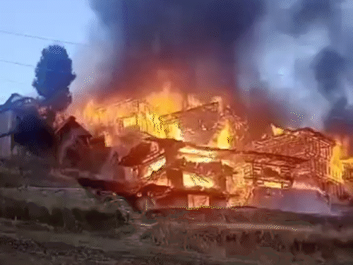 हिमाचल प्रदेश के कुल्लू जिले के बंजार के तांदी गांव में आज दोपहर बाद आग भड़क गई। इस अग्निकांड में 4 मकान जलकर राख हो गए, जबकि आसपास के दो अन्य मकानों पर भी खतरा बना हुआ है। इसमें गढ़पति शेषनाग का भंडार भी जल गया। दमकल विभाग की गाड़ी घटना स्थल के लिए रवाना हो गई है। आग पर जल्द काबू नहीं पाया गया तो दूसरे घर भी इसकी चपेट में आ सकते है। मौके पर मौजूद लोग आग को बुझाने में जुटे है। मगर लकड़ी के मकानों में आग तेजी से फैल रही है। बंजार विधानसभा क्षेत्र के स्थानीय विधायक सुरेन्द्र शौरी भी घटना स्थल की ओर निकल गए है। आग कैसे लगी इसकी अभी तक कोई जानकारी नहीं मिल पाई है।