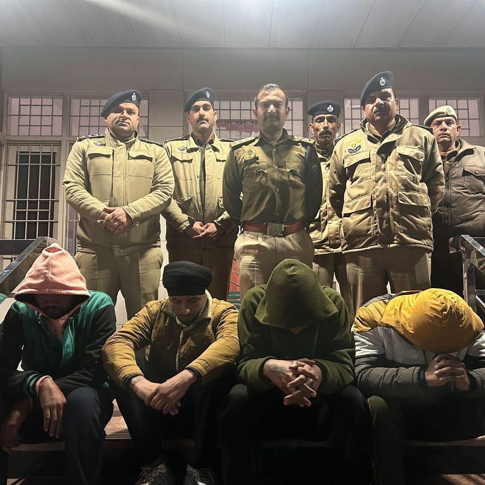 हिमाचल प्रदेश के कांगड़ा में पुलिस ने एक युवक पर जानलेवा हमला करने के मामले में 8 आरोपियों को गिरफ्तार किया है। पैसों के विवाद में अतुल नाम के युवक पर तलवार और बेसबॉल बैट से हमला किया गया था, जिससे उसके सिर और शरीर पर गंभीर चोटें आई। घायल को टांडा मेडिकल कॉलेज में भर्ती कराया गया था, जहां कई दिनों तक उसकी जान बचाने के लिए डॉक्टरों ने संघर्ष किया। डीएसपी अंकित शर्मा के अनुसार, घटना के बाद पुलिस ने हत्या के प्रयास, दंगा और हथियार अधिनियम के तहत मामला दर्ज किया। सीसीटीवी फुटेज की मदद से 4 बाइक पर सवार 8 बदमाशों की पहचान की गई। इनमें से ईशान (28), सारांश (29), अंशुल (23) और साहिल (24) को कुछ दिनों में ही पकड़ लिया गया। बाकी चार आरोपी फरार हो गए थे। कई शहरों में छिपते रहे हमलावर फरार आरोपी एक महीने तक चामुंडा जी, इंदु नाग मंदिर, अमृतसर और लुधियाना में छिपते रहे। धर्मशाला सत्र न्यायालय ने अपराध की गंभीरता को देखते हुए उनकी जमानत याचिका खारिज कर दी। अंततः पुलिस ने मनप्रीत मनु (29), तरनजीत तन्नु (28), रमन (29) और करण (27) को कांगड़ा के तहसील चौक से गिरफ्तार कर लिया। सभी आरोपी गुप्त गंगा और आसपास के क्षेत्र के रहने वाले हैं। पुलिस आरोपियों को स्थानीय अदालत में पेश करेगी।