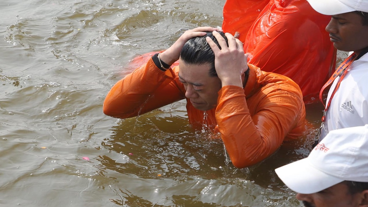 महाकुंभ में आज भूटान नरेश जिग्मे खेसर नामग्याल वांग्चुक ने त्रिवेणी के संगम में सीएम योगी आदित्यनाथ के साथ आस्था की डुबकी लगाई। भूटान नरेश और सीएम योगी ने विधि विधान से संगम तट पर पूजा पाठ किया। दोनों कबूतरों को दाना खिलाते भी नजर आए।