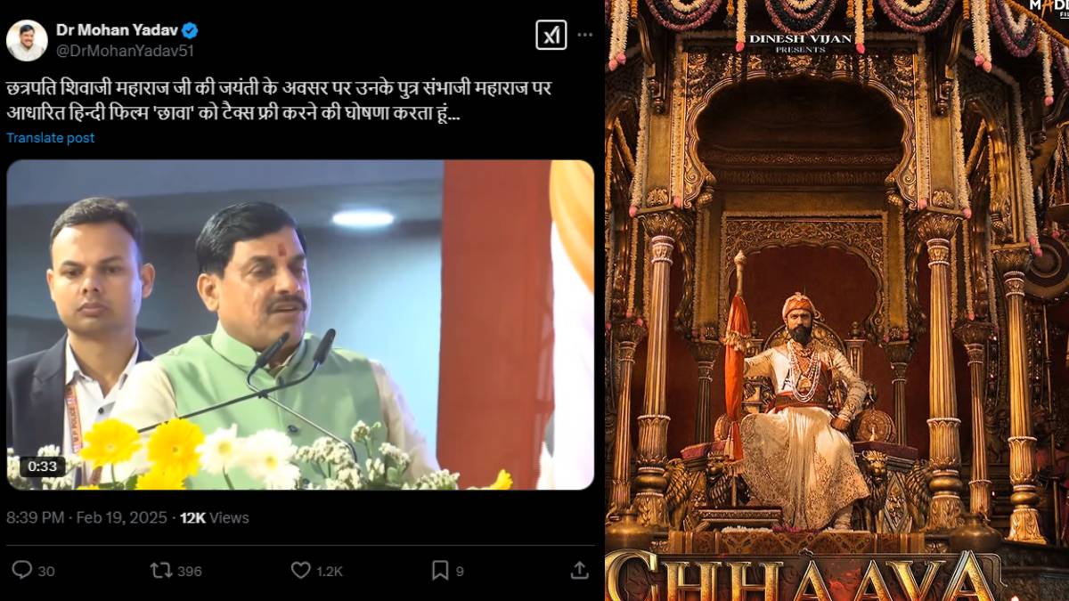 विक्की कौशल की फिल्म छावा बॉक्स ऑफिस पर हिट रही है। अब तक फिल्म ने 188 करोड़ रुपयों की कमाई कर ली है। अब मध्य प्रदेश में इस फिल्म को टैक्स फ्री कर दिया गया है। मुख्यमंत्री मोहन लाल यादव ने पोस्ट कर इसकी जानकारी दी है।