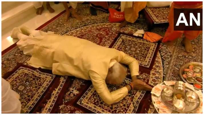 आयोध्या में भगवान राम का भव्य मंदिर बनकर तैयार हो रहा है। इस बीच रामलला की प्राण की को पूरा कर लिया गया है। प्राण प्रतिष्ठा कार्यक्रम के बाद गर्भगृह से बाहर निकलने से पहले पीएम मोदी ने रामलला के आशीर्वाद लिए वो भी साष्टांग दंडवत होकर।