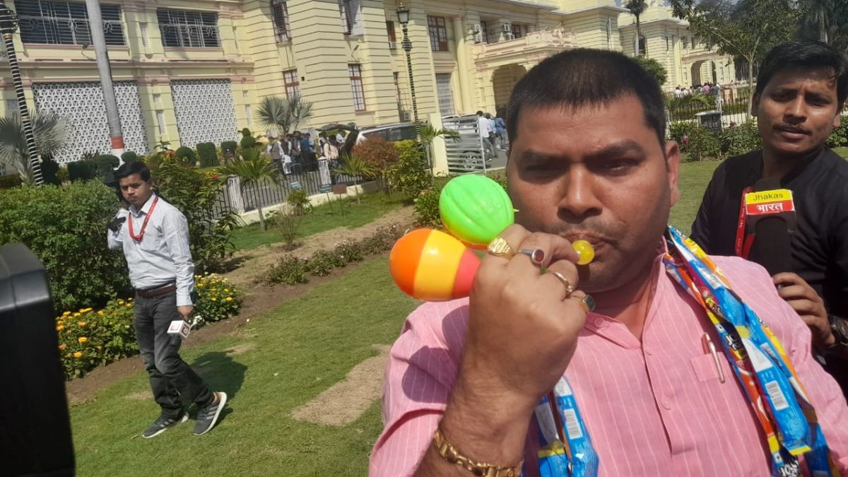 राजद विधायक मुकेश रौशन ने बजट के विरोध का अनोखा तरीका निकाला है। उन्होंने झुनझुना और लॉलीपॉप चूसकर विरोध जताया है।