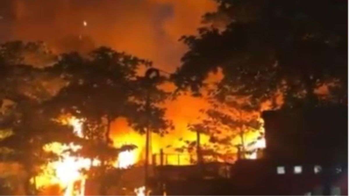 फिल्म सिटी रोड के पास स्थित बागेश्वरी मंदिर के करीब लगी यह आग लगी है। आग की लपटें दूर-दूर तक फैलती हुई नजर आ रही हैं।