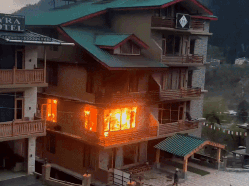 मनाली के प्रीणी गांव में स्थित माया गेस्ट हाउस में शुक्रवार शाम को भीषण आग लग गई। आग से गेस्ट हाउस की पहली और दूसरी मंजिल के तीन कमरे पूरी तरह जलकर राख हो गए। घटना शाम करीब 6 बजे की है। इस समय साढ़े चार मंजिला होटल के 13 कमरों में से 10 कमरों में पर्यटक ठहरे हुए थे। आग की सूचना मिलते ही सभी पर्यटकों को सुरक्षित बाहर निकाल लिया गया। डीएसपी मनाली केडी शर्मा ने बताया कि होटल मूल रूप से प्रीणी के तीन भाइयों भोलेराम, हुकम राम और चीनू राम का है। उन्होंने इसे दिल्ली निवासी फराज हसन को लीज पर दिया है। फायर ब्रिगेड अधिकारी मनाली शरणपत के अनुसार, उनकी टीम के पहुंचने से पहले ही होटल को खाली करवा लिया गया था। आग से लगभग 20 लाख रुपए का नुकसान हुआ है। हालांकि, फायर ब्रिगेड की टीम ने समय रहते आस-पास की करोड़ों की संपत्ति को बचा लिया। पुलिस आग लगने के कारणों की जांच कर रही है।