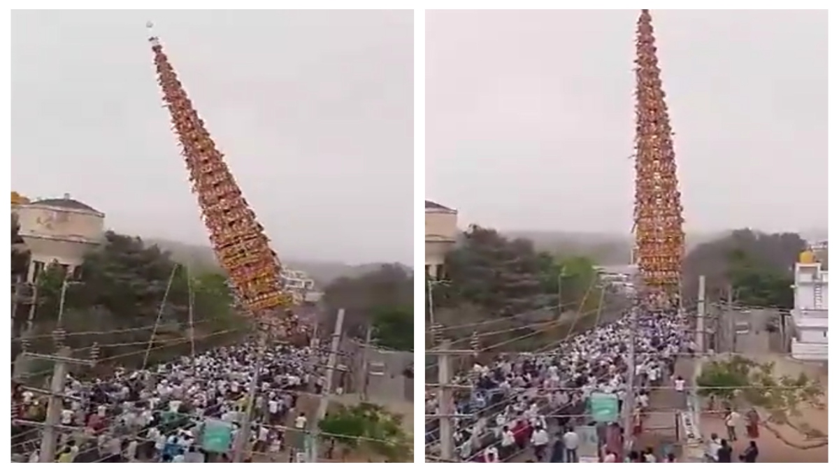 बेंगलुरू के एक गांव में उत्सव के दौरान एक 100 फीट ऊंचा रथ अचानक भीड़ पर गिर पड़ा, जिसमें दबकर एक शख्स की मौत हो गई और कई लोग घायल हैं। देखें वीडियो…