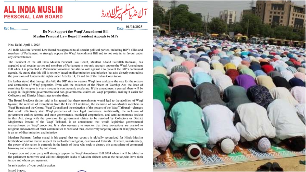 लोकसभा में वक्फ संशोधन विधेयक को पेश किया जाना है और उसपर चर्चा की जाएगी। इसे लेकर विपक्षी दलों से ऑल इंडिया मुस्लिम पर्सनल लॉ बोर्ड ने अपील की है कि इस बिल को सपोर्ट न करें।