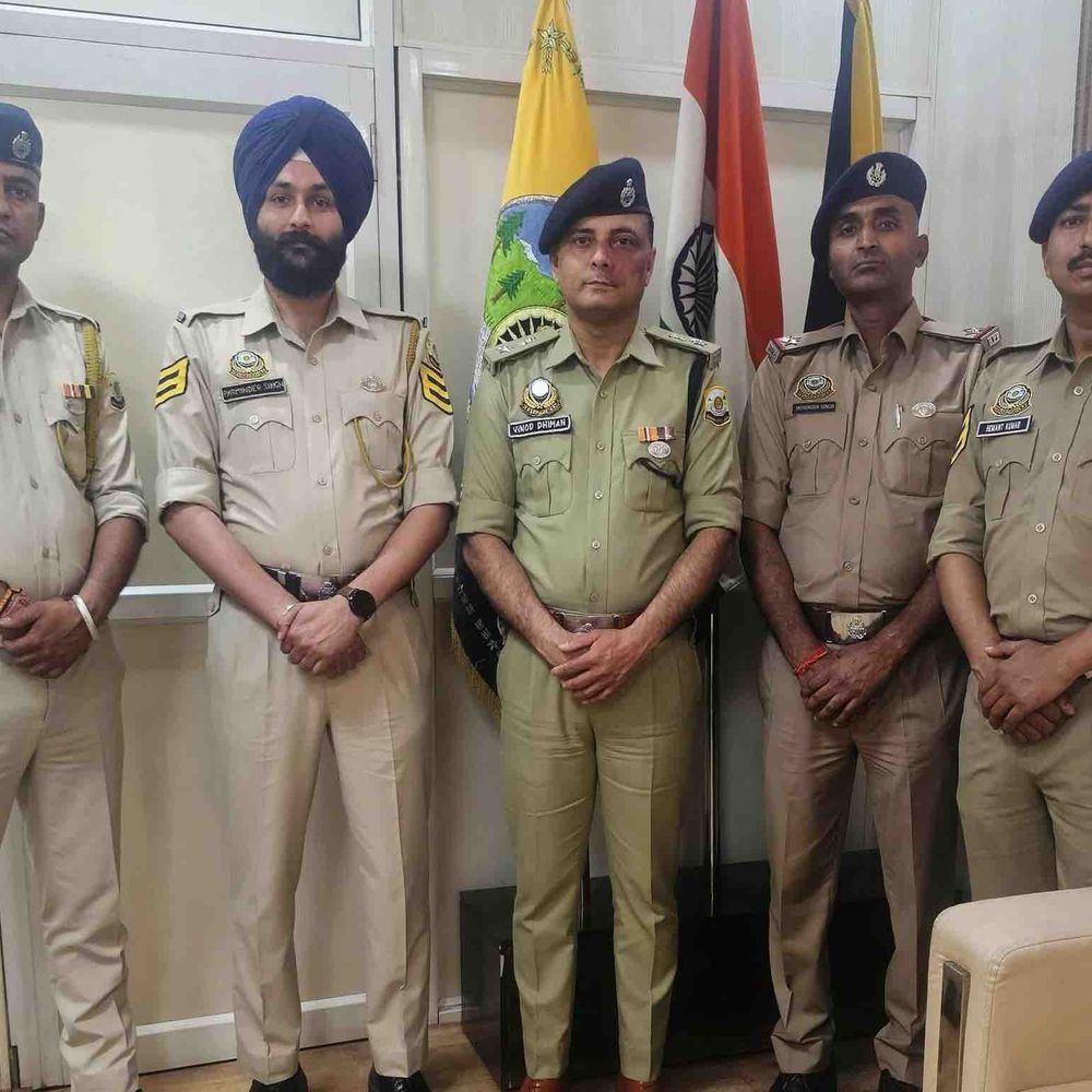 हिमाचल प्रदेश पुलिस मुख्यालय शिमला में एक विशेष सम्मान समारोह का आयोजन किया गया। इस दौरान पुलिस महानिदेशक अतुल वर्मा ने जिला बद्दी के चार पुलिस कर्मियों को उनकी उत्कृष्ट सेवाओं के लिए सम्मानित किया। वर्ष 2022 के कार्यों के लिए तीन पुलिसकर्मियों को डीजीपी डिस्क अवॉर्ड प्रदान किया गया। इनमें मोहिंदर सिंह, परमिन्दर सिंह और अशोक कुमार शामिल हैं। वहीं वर्ष 2023 के लिए हेमन्त कुमार को साइबर इन्वेस्टिगेटर बैज से सम्मानित किया गया। यह सम्मान पुलिस कर्मियों की कर्तव्यनिष्ठा और उत्कृष्ट कार्य प्रदर्शन को मान्यता देने के लिए प्रदान किया गया। इन पुलिसकर्मियों ने अपनी अटूट प्रतिबद्धता से पुलिस विभाग की प्रतिष्ठा को बढ़ाया है।