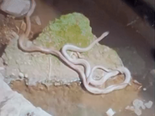हिमाचल प्रदेश के हमीरपुर में आज सफेद रंग के दो दुर्लभ सांप देखे गए। वहां मौजूद लोगों ने इनका वीडियो बना दिया, जो अब सोशल मीडिया में तेजी से वायरल हो रहा है। हमीरपुर के बड़सर उपमंडल के भोटा में राधा स्वामी चैरिटेबल अस्पताल के पास सांप देखे गए हैं। दोनों खड्ड के किनारे अठखेलियां कर रहे थे और लोगों के लिए आकर्षण का केंद्र बन गए। इन्हें देखने के लिए मौके पर लोगों की भीड़ जुट गई और सभी सांप के इस जोड़े को मोबाइल में कैद करते नजर आए। दोनों सांप की 8 से 10 फुट बताई जा रही है। वीडियो देखने से यह एल्बिनो सांप लग रहा: डीएफओ डीएफओ वाइल्ड लाइफ एवं स्नैक स्पैशलिस्ट राजेश शर्मा ने बताया कि यह कॉमन प्रजाति लग रही है और यह ज्यादातर पानी में पाया जाता है। वीडियो देखने पर यह एल्बिनो सांप लग रहा है। मगर एचडी वीडियो नहीं होने की वजह से बहुत ज्यादा स्पष्ट नहीं हो रहा।