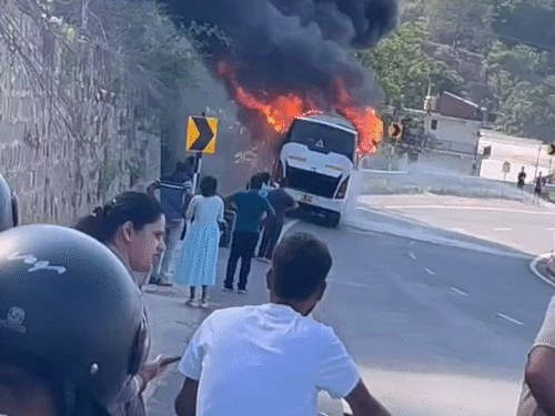 हिमाचल प्रदेश के कीरतपुर-मनाली फोरलेन पर सोमवार दोपहर बाद एक टूरिस्ट बस में आग लग गई। बस से धुआं उठते ही ड्राइवर ने इसे सड़क किनारे खड़ा किया और सभी सवारियों को बस से उतारा। देखते ही देखते बस जलकर राख हो गई। गनीमत यह रही कि इस हादसे में कोई जानी नुकसान नहीं हुआ। ड्राइवर की सतर्कता से सभी यात्री सुरक्षित है। मगर बस में टूरिस्ट का ज्यादातर सामान और नगदी जलकर राख हो गई। आग की भयंकर लपटे देखकर सभी घबरा गए और कुछ देर के लिए पूरे क्षेत्र में धुआं-धुआं हो गया। दोपहर साढ़े तीन बजे हुआ हादसा सूचना के अनुसार, यह हादसा सोमवार दोपहर बाद करीब साढ़े तीन बजे मंडी के सुंदरनगर गौसदन के पास हुआ। जब तक दमकल वाहन मौके पर पहुंच पाता तब तक बस का ज्यादातर हिस्सा और अंदर रखा सामान जल चुका था। आगरा से कुल्लू जा रही थी बस बताया जा रहा है कि बस आगरा से मनाली जा रही थी। 21 सीटर बस में 19 टूरिस्ट सवार थे और मनाली घूमने जा रहे थे। डीएसपी भारत भूषण ने बताया कि सभी पर्यटक सुरक्षित हैं। आग के कारणों का अभी तक पता लगाया जा रहा है। सुंदरनगर बीएसएल फायर सर्विस के फायर ऑफिसर दिनेश सागर ने बताया कि बस में आग लगने की सूचना मिलते ही उनकी टीम मौके पर पहुंची और आग पर काबू पाया। इस घटना को वहां मौजूद लोगों ने अपने मोबाइल में वीडियो बना दिया जो कि अब सोशल मीडिया में तेजी से वायरल हो रहा है।